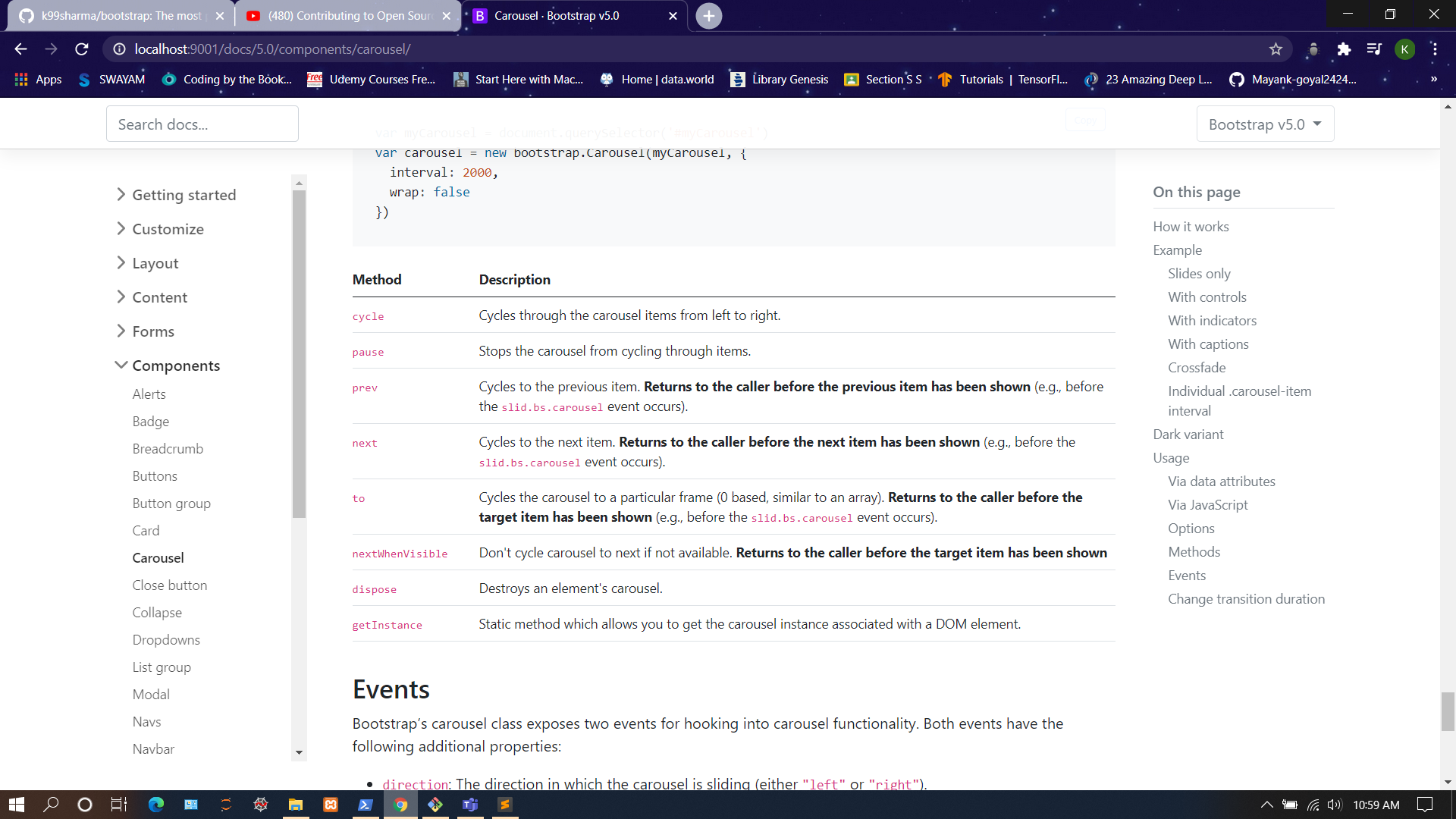 Changed the description of nextWhenVisible() method in carousel component part of documentation and also added to() method in it.