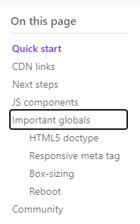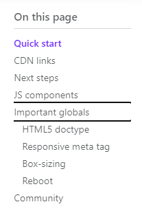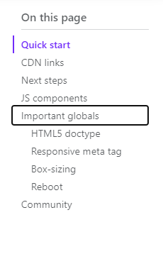 one slight annoyance there is the longer link for the "responsive meta tag" which breaks onto two lines...but I personally can live with that at the md size