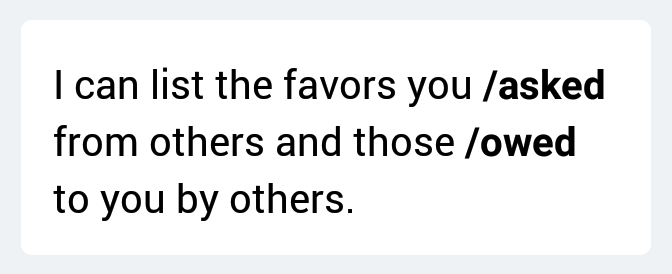 When was the last time you opened your browser, loaded a website and logged in just to ask your friend something? Probably a long time ago! Most of our day-to-day interactions revolve around chat rooms through our mobile phones. To make tracking favors feasible, it must be invisible yet omnipresent in our discussions. It must be as simple as plain asking.