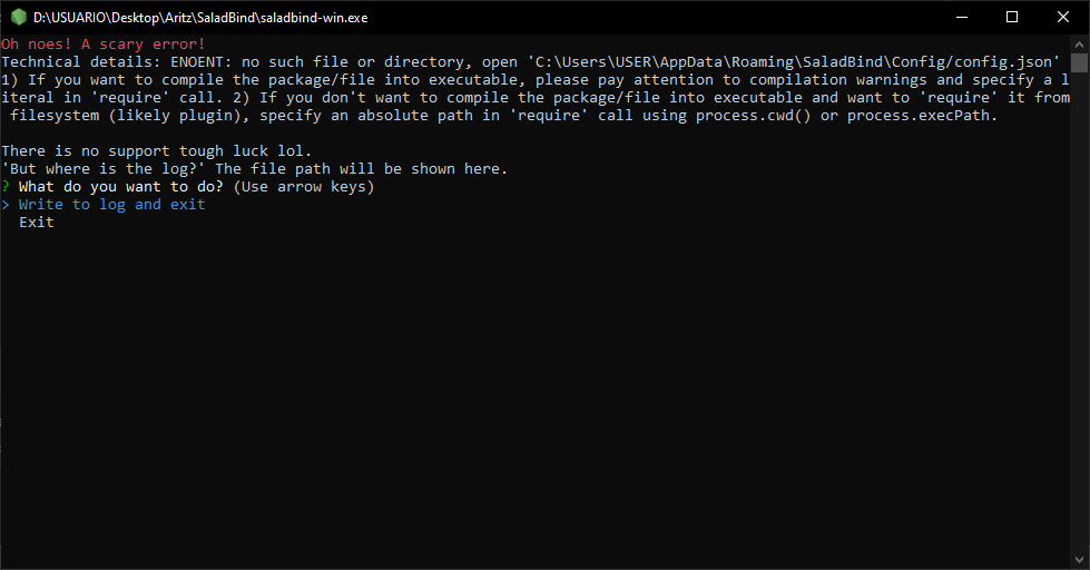 [Bug] [Windows]: ENOENT: no such file or directory, open 'C:\Users\USER\AppData\Roaming\SaladBind\Config/config.json' #8