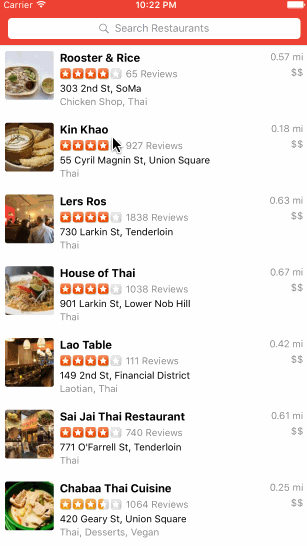 - Search bar should be in the navigation bar (doesn't have to expand to show location like the real Yelp app does).