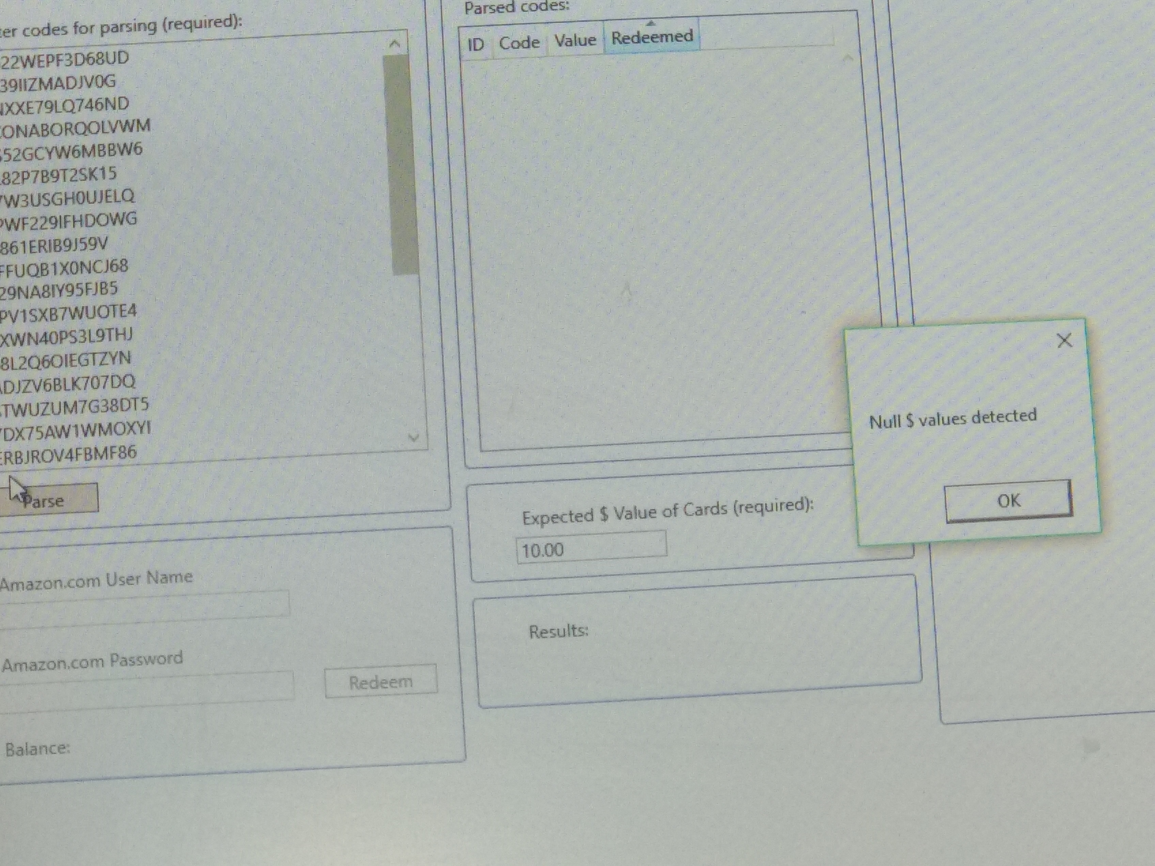 Its saying Null $ value detected