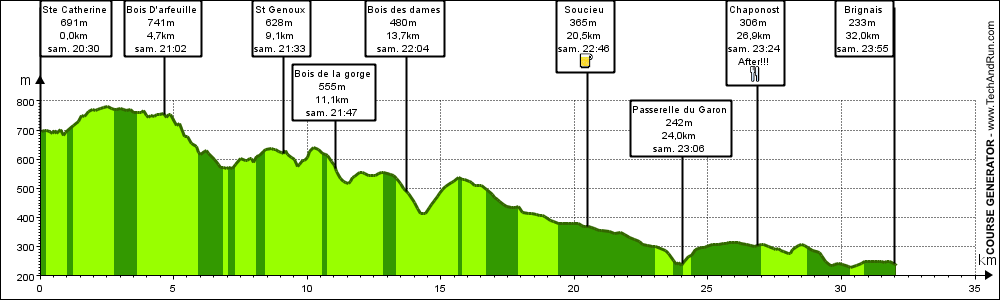 I created Course Generator in 2008 for my first 100 km ultra trail. Since then, I added a lot of features and it has been used by a lot of french ultra-runner. Up to the version 3.88 it has been written in C# and now java is used in order to be cross platform (Windows, Mac OS and Linux) and multilingual.