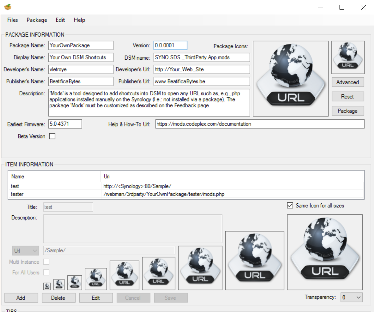 Technically said, Mods Packager manages the Structure required to create a Package for Synology.