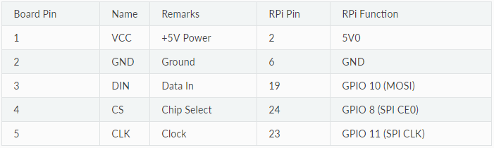 Pour commencer, il faut brancher la matrix au RaspBerry selon ce tableau :