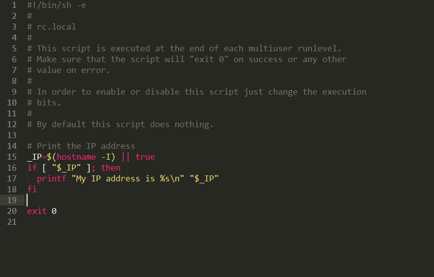 /etc/rc.localde votre RaspBerry vous pouvez lancer le programme au démarrage de celui ci. Pour éditer ce fichier, utilisez la commandesudo nano /etc/rc.localousudo vim /etc/rc.local.