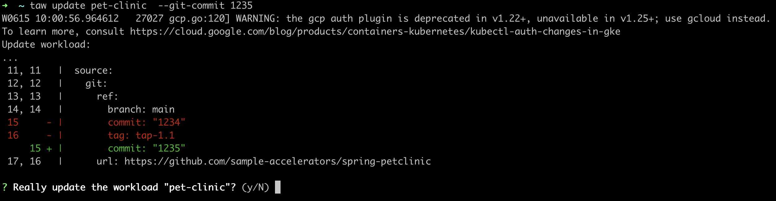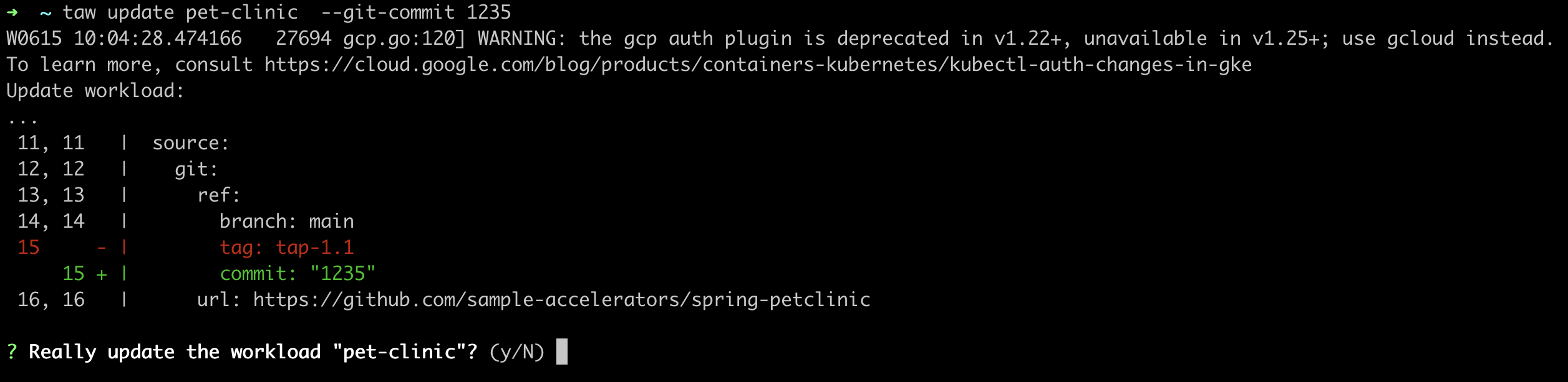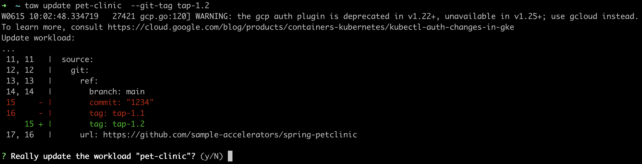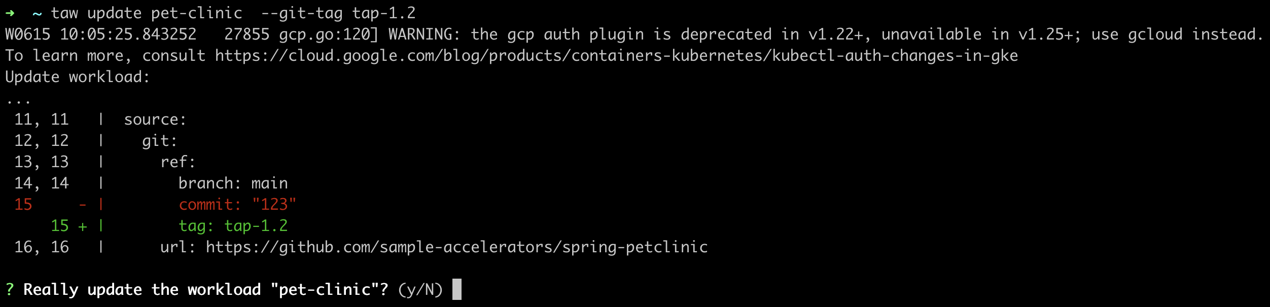 tanzu apps workload update pet-clinic --git-tag tap-1.2