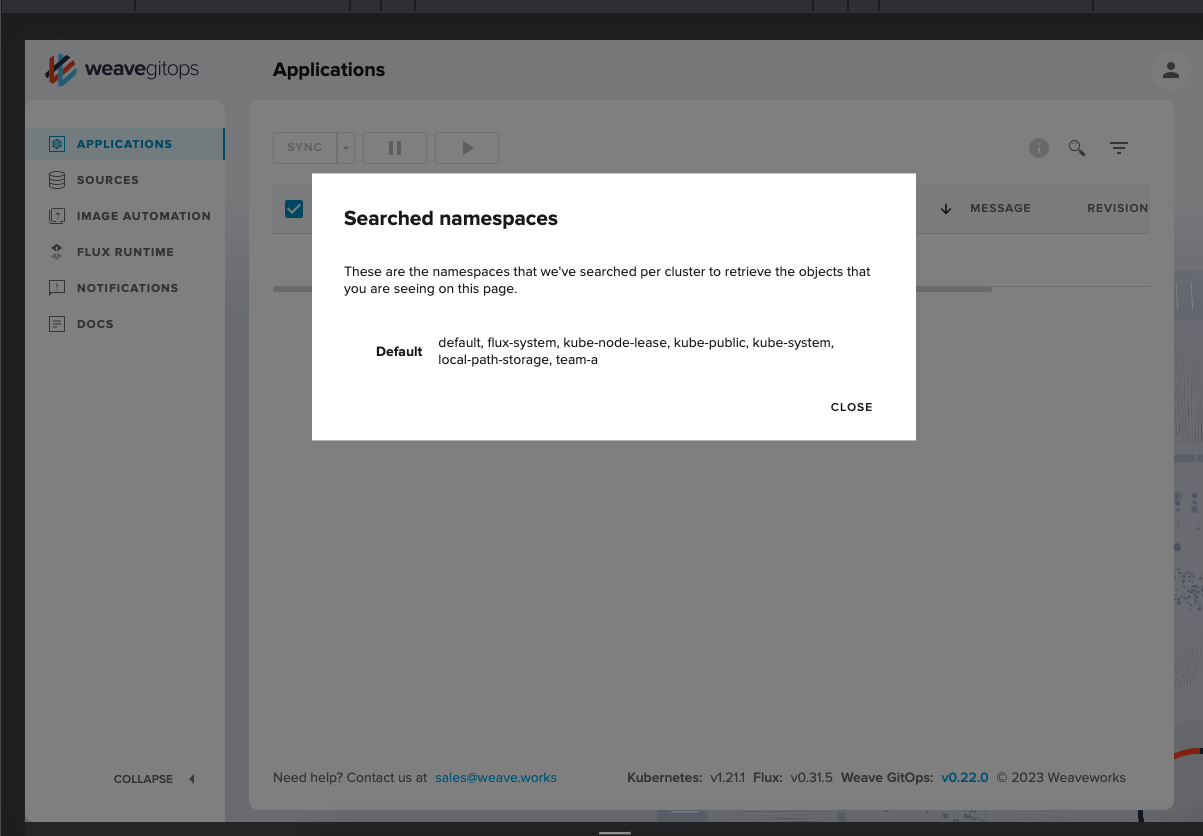 We're doing a pilot on the Application table to display an info note containing the clusters and namespaces that have been searched to retrieved the data.