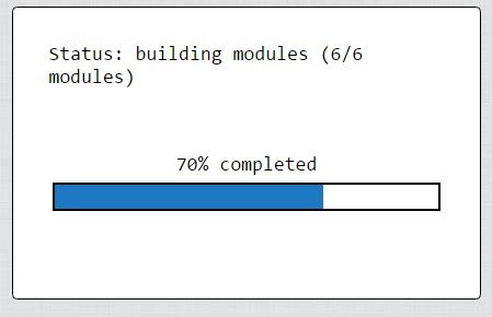 When Webpack is compiling a little window appears and shows the compilation status (like building modules, optimizing chunks, etc.) and a progress bar indicating the progress (who would have thunk). The title of the browser tab also displays the progress in percent.