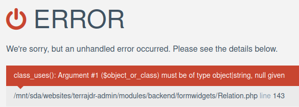 When using the Relation formwidget with an unsupported relationship (example detailed below), the formwidget is throwing this misleading Exception: