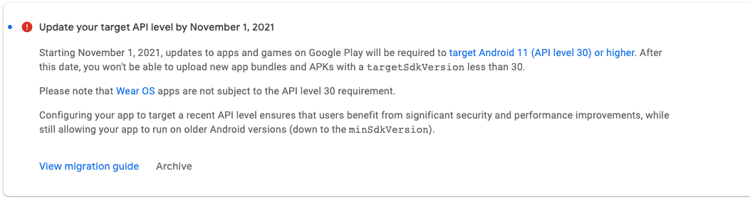 commit eae5831 Author: Ward Abbass <swabbass@gmail.com> Date: Tue Nov 30 08:55:13 2021 +0200 Android API 30 fixes (#7343) Upgrading android target SDK to 30, to support android 12 changes. - Refactor StatusBarUtil to SystemUIUtils to include status and navigation bars. - Migrate deprecated code using flags to a modern one. - Calculating WindowInsets per component where all views are laid as full screen. - Keyboard enhancements to show hide keyboard. - Fix applying Options of a child taking parent Options into consideration. - Fix fixed status bar height and use a more elegant way. - Add more tests for SystemUiUtils. - Add a SystemUi screen to demonstrate system UI capabilities. - Migrate Reanimated usage to support Reanimated 2. Closes #7339. Closes #7225. Closes #7358. Closes #7199. Closes #7171. Closes #7111. Closes #6988. Closes #4258. Closes #7360. Demo: https://user-images.githubusercontent.com/7227793/142203865-d65b6910-21f8-4617-812e-b5576a6b58e4.mov Co-authored-by: Ward Abbass <swabbass@gmail.com> Co-authored-by: Yogev Ben David <yogev132@gmail.com> Co-authored-by: svbutko <svbutko@hotmail.com> Co-authored-by: Ward Abbass <warda@wix.com>