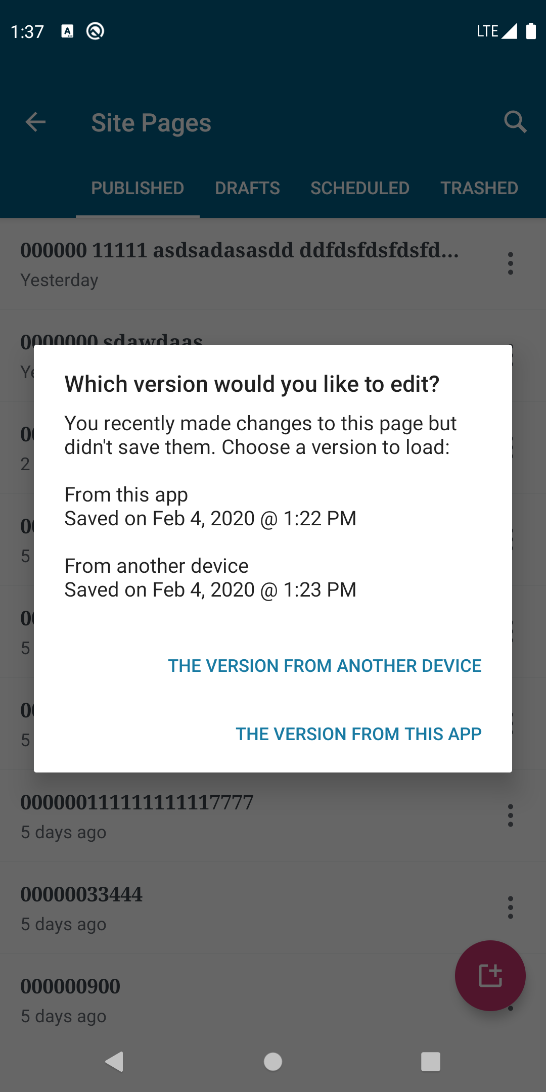 Page Listdidn't support loading an unpublished revision when changes were made on other devices.Solution