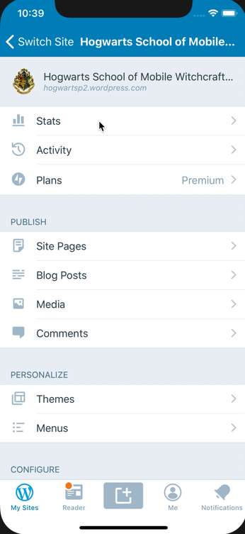 • From My Sites select a site and open its dashboard