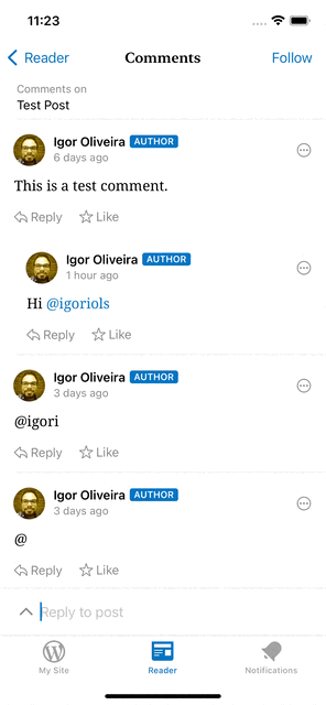CommentDetailViewController,NotificationDetailsViewControllerandReaderCommentsViewControllerto ensure the suggestions list is displayed because those view controllers are not unit-testable.PR submission checklist: