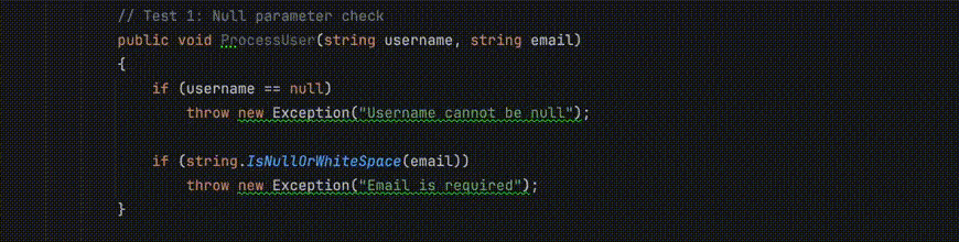 - Context aware: Considers method parameters, variable checks, and error messages.