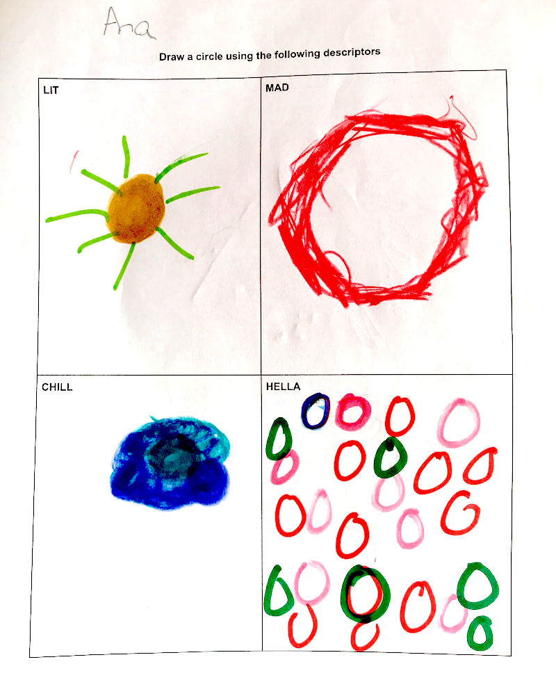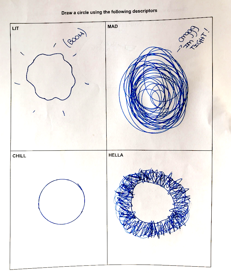 To determine what slang words to use, and how they would influence the shape in the demo, we user-tested with middle-school students, asking them to draw out what slang words would look like visually, and asking them to contribute a slang word of their own: