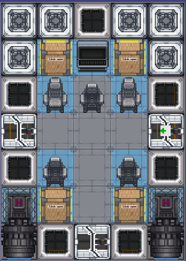 I figured i'd place some cryopods since there was some room and you never know if a miner has to go and decides to let another player take control. The only "mining" gear i've added is a fourth suit storage unit for the sake of symetry. I guess the mining medics will probably take it instead of its intended purpose of being here for the optional extra mining volunteer. The docking site is affected by ash storms but not the rest of the areas, my idea was of a shutter system to let the shuttle in and out, but i guess its kinda weird how it is working right now. Sadly, this issue is inherent with the advanced airlock controllers themselves, and your only option is waiting and skipping pressurization. Once the walls are fixed it will work again unless something went wrong in the atmos area. I've added a sec checkpoint for the cargo guard, giving them a room for themselves, i myself occasionaly go down on mining to check on the miner and talk with them about the dangers of bringing dangerous stuff on station. As for the locker, i anticipated this problem and did not place any, as the cargo guard already has a locker on station. I guess the secdrobe wasn't really necessary however, and i'll probably remove it as there is already one on station too. |