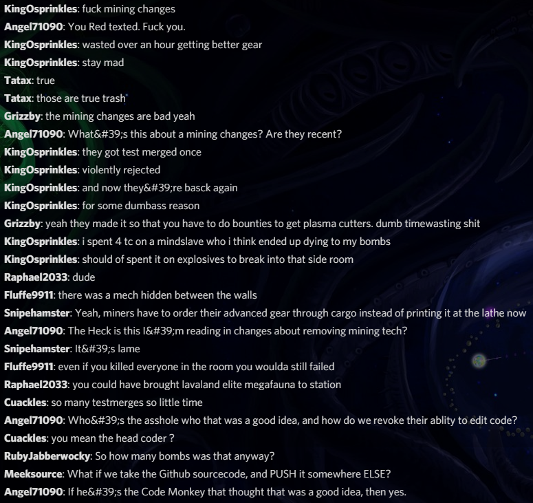 I totally understand wanting to make Cargo pay more attention to bounties, but I think something as crucial as mining gear is a bad place to start - maybe you could lock their precious grill behind a food bounty, or lock the bike behind a bounty, or lock whatever might be a common meme crate among CTs behind a bounty. I don't like locking a crucial thing such as mining gear behind a new system that's only explained to CTs if they read the entire bounty list (since all predetermined bounties are at the bottom, so a CT would need to scroll all the way there to see them). |