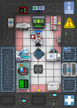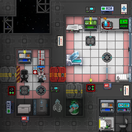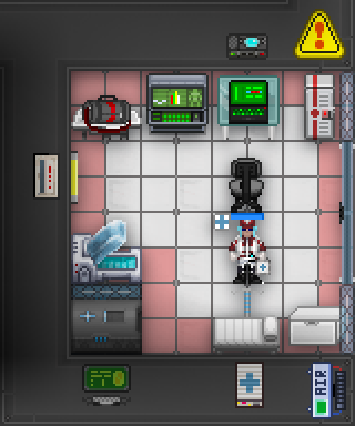 Regarding the debate on sunglasses / the flash, in my view it might be better for them to have one or the other. Security Officers, to my knowledge, don't start with both, and they're arguably in more varied and potentially dangerous situations than a Brig-based MD would be. Having one or the other cuts the potential validhunting, and makes them not flashproof and able to flash. Something to explore might be letting them keep their sunglasses, and putting a wall mounted flash with an ID-locked button somewhere in the room, so they can control unruly individuals in their own domain and nothing more. And on the lack of anesthetic, perhaps a tank and mask could be put in the brig physician locker to unify all map configuration in having a set? |
