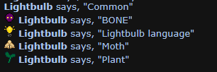 As the title says, adds 3 brand new languages for the Moths, Ethereals, and Plasmamen. These languages will be known by the corresponding races at round start, and in the case of sheltered, you have your racial languages instead of defaulting to Space Japanese. My hope is that this will give some life to the other races and attract people who want to have a sense of identity about their characters, and having a racial language reinforces this. These languages even have their own (bad) sprites that I made (as well as adding one for Sylvan because I didn't know how the sprites worked until now).