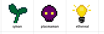 The Etherean, Sylvan, and Bonespeak sprites are done by me, and I don't have an artistic bone in my body, so if they need to be fixed up, just let me know with some feedback