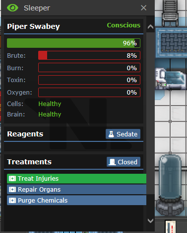 my problem is how slow it is, it legit takes like 5 minutes to heal 100 brute damage and you cant even heal toxins and oxygen damage until 40 minutes after roundstart because of it needing parts. most of the time im in medbay with this test merged i never see anyone use the sleepers anymore. they are pretty much just wasted space at this point. please dont merge this until its less bad or slow or something god please |