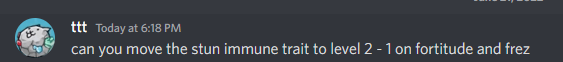 tweak: Moves stun immunity of fortitude to level 2.