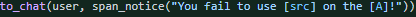 Check the warning text for consistency. Generally we omit "the" because the game automagically slaps it on if it's an improper noun (read: doesn't start with a capital). Also if you changed the fail text to something more interesting than "you failed!" such as "[src] sparks and fails to affect [A]" or something that'd be cool beans. |