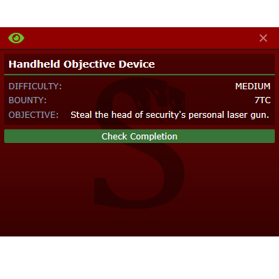 this is a cool idea but im not so sure on the balance implications. Doing 1 medium/hard mission can allow you to easily cross the TC threshold for a lot of things that are otherwise very difficult to get. You'd need to be an IAA and kill some targets, gamble all your TC on being a contractor, or manage to link up and borrow TC from another traitor (or steal it). This however seems to have virtually no risk and if the given objective is an easy one to get for you in the current round, it can be very powerful. If you don't like the objective, as far as I know you can just choose to completely ignore it. Even though you wont get any extra TC you wont specifically lose anything from not going with it. I think a better idea would be to integrate this with the contractor stuff thats already in place since it has much of the same idea anyways and would keep it so that you actually risk stuff for extra TC. TL;DR |