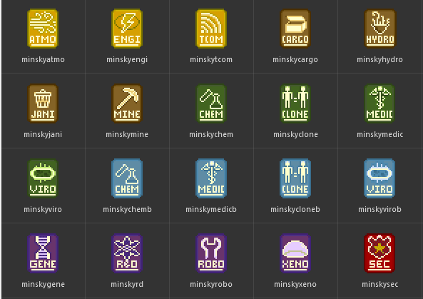 New sprites in coordinated department colors. Primarily for use on Minsky Station.
