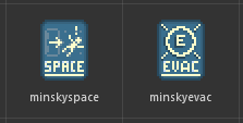 Adds two more signs to the Minsky signage signature collection. Space and Evac: