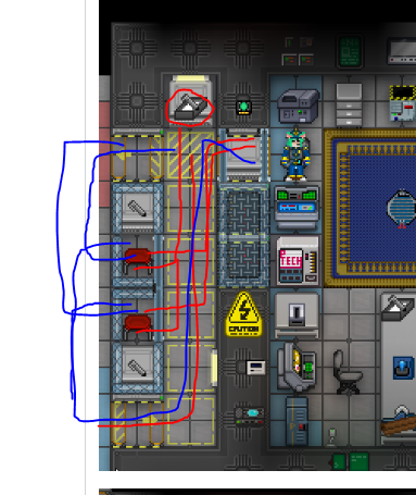 What if the middle two tables were removed, and replaced with two directional reinforced windows, facing each other. This would create a cubicle, and players sitting in the cubicle would not be jostled by players moving through the HOP line. Additionally, to further discourage jostling of players (and to 'reset' players to the back of the line), move the vertical line of directional windows from the left to the right. I think this makes more sense, because the players still have to pass the HoP to request the form (on the clipboard in the HoP locker (?)). I like the additional ability for paperwork meta, though. |